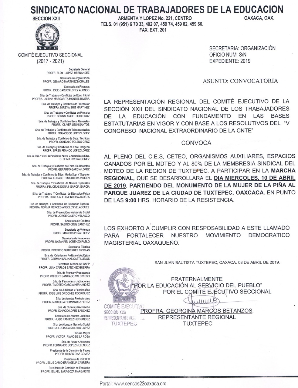 La Combativa Sección XXII de la CNTE Oaxaca se moviliza en el marco del Centenario Luctuoso del General Emiliano Zapata Salazar, en un paro de labores de 24 horas, acordado por el V Congreso Nacional Extraordinario de la CNTE para exigir la Abrogación Total de la Reforma Educativa Peñista y la defensa de la Educación Pública en México.