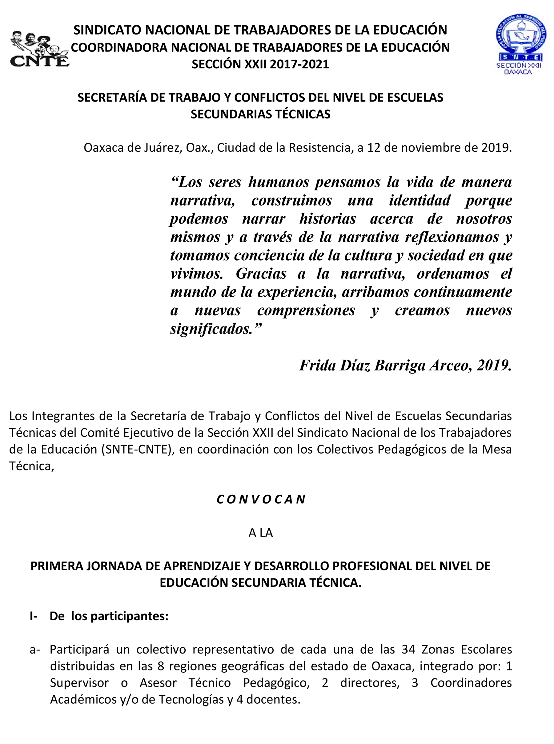 Convocatoria: Primera Jornada de Aprendizaje y Desarrollo Profesional del Nivel de Educación Secundaria Técnica.