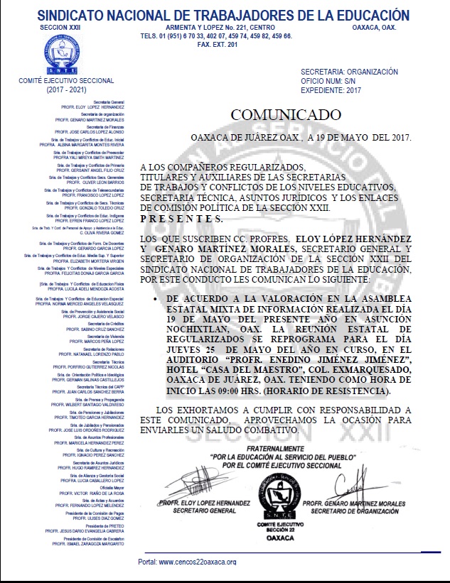 COMUNICADO A LOS COMPAÑEROS REGULARIZADOS 19 MAYO 2017