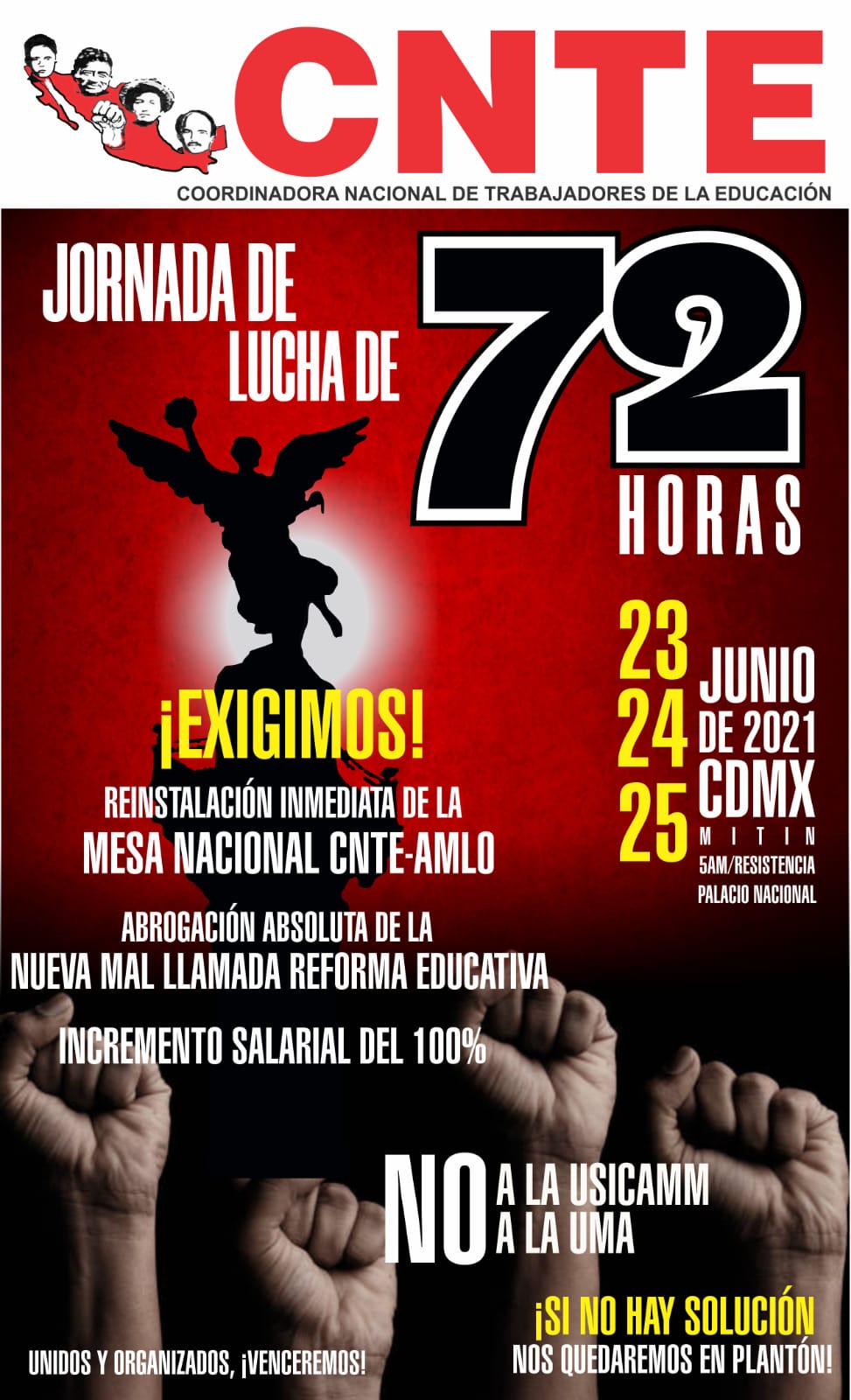 MOVILIZACIÓN NACIONAL. 72 HORAS DE LUCHA DE LA #CNTE 23, 24 Y 25 DE JUNIO 2021